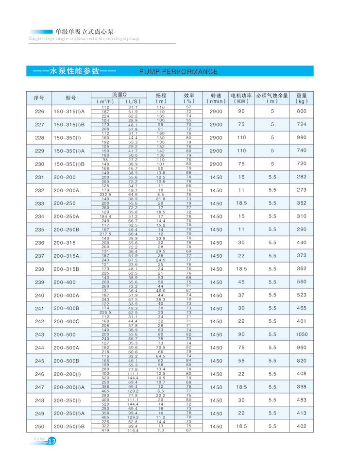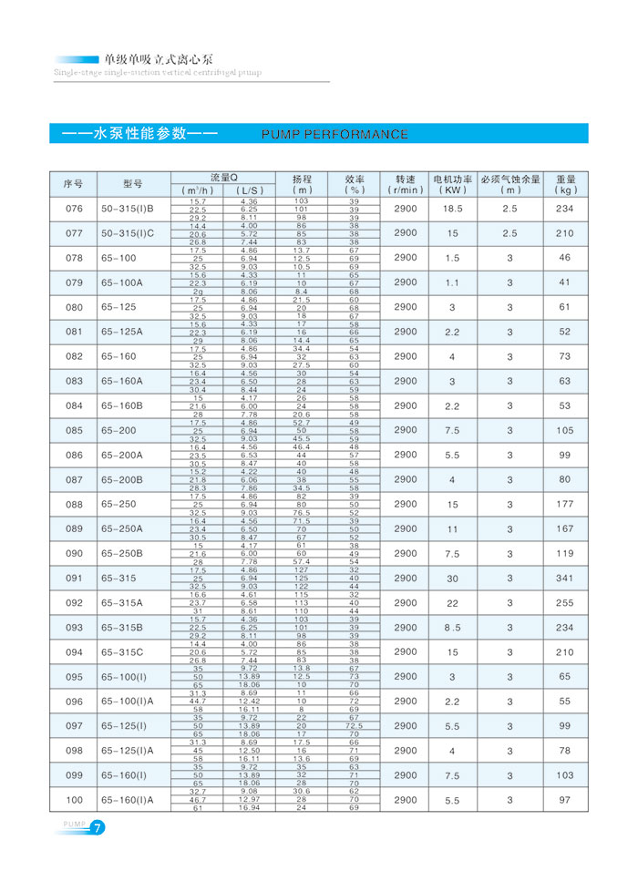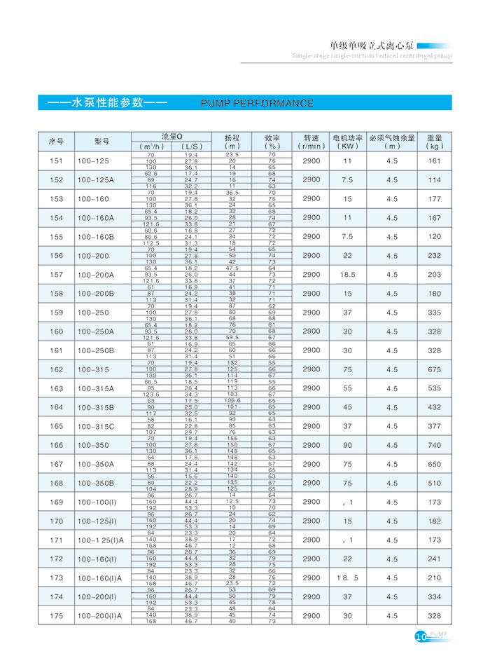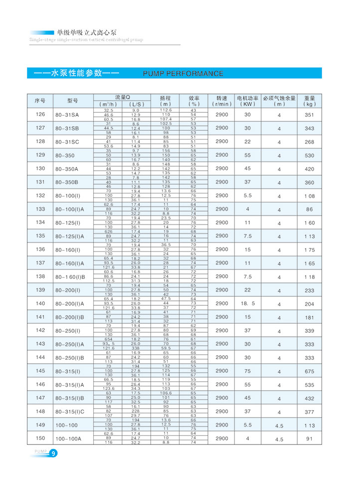 流(liú)量範圍1.5~1200m7h,揚程範圍(wei)8-150m,分基本型、擴流型(xing),A,B,C切割型等250多種規(gui)格。根據流量介質(zhì)和溫度不同,設計(jì)制造成同性能參(can)數的熱水泵、化工(gōng)泵、油泵和防爆化(huà)工泵系列産品。